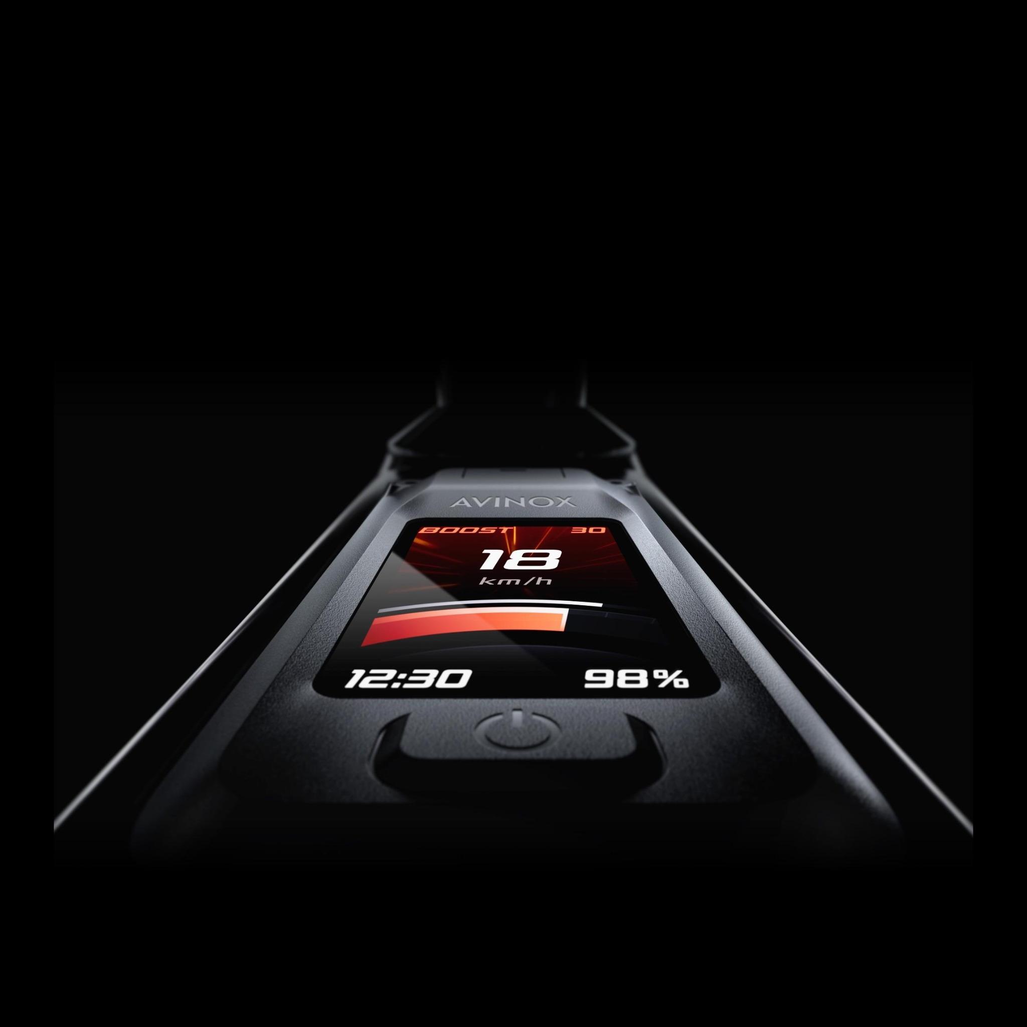 La pantalla táctil OLED a color de 2″ ofrece datos de recorrido y autonomía en tiempo real. Con a la app Avinox, ofrece localización remota.